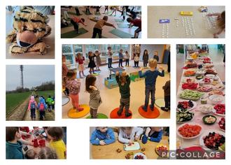 Unter dem Motto „Rund um die Gesundheit“, stand unser gruppenübergreifendes Projekt, welches in der Kindertageseinrichtung Hofbieber durchgeführt wurde. Jeden Tag durften die Kinder an unterschiedlichen Angeboten teilnehmen und in den Bereichen Ernährung, Entspannung und Bewegung ihr Wissen erweitern. Während den Naturtagen haben die Kinder Spielplätze erobert, Tiere besucht, in der Natur gefrühstückt und Wanderwege sowie Wälder erkundet. In den Entspannungsangeboten lernten die Kinder unterschiedliche Yogaeinheiten kennen und reisten dabei in ferne Länder wie Indien oder unter Wasser. Im Bereich Ernährung lernten sie die Ernährungspyramide anhand einer Ernährungslok kennen und wurden von Toni Tiger, dem Ernährungsexperten besucht. Gesunde und ungesunde Ernährung stand dabei im Fokus. Dabei durften die Kinder zum Beispiel, Getreide mahlen, Experimente durchführen und Lebensmittel mit allen Sinnen erkunden. Passend zu den Ernährungsangeboten, wurden Bastelangebote angeboten und unterschiedliche Gerichte zubereitet wie zum Beispiel, Milchshake oder Gemüserennautos. Zudem haben die Kinder einen Trickfilm „Bert, der Gemüsekobold“ erstellt. Abschluss des Projektes war ein gelungener Elternvormittag mit einem gesunden Frühstück und einem Vortrag zur gesunden Ernährung. Der Trickfilm der Kinder wurde präsentiert und Projektinhalte vorgestellt. Es war ein tolles und nachhaltiges Projekt zur Gesundheitsföderung.