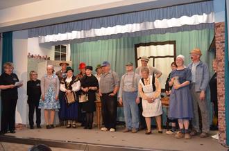 Die Mitglieder der Theatergruppe Kleinsassen mit Moderatorin Regina Goldbach (links).