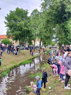Highlight war das 18. Entenrennen, bei dem rund 800 Entchen um die Wette schwammen – mit der Aussicht auf viele attraktive Preise. Direkt im Anschluss startete das Bierfässchenrennen, bei dem über 230 Mini-Bierfässer an den Start gingen.