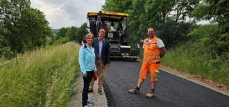 Die Bürgermeisterin von Nüsttal, Marion Frohnapfel und der Bürgermeister von Hofbieber, Markus Röder besichtigten am 07.06.2023 die laufenden Bauarbeiten zur Herstellung des interkommunalen neuen Radweges zwischen den Gemeinden Hofbieber und Nüsttal.