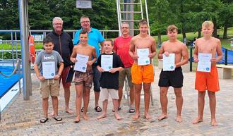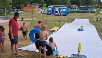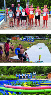 Das Schwimmbadfest war trotz mäßigem Wetter ein voller Erfolg. Bei freiem Eintritt machten zahlreiche Besucher von den reichhaltigen Angeboten gebrauch. Eines der zahlreichen Highlights waren die Power-Paddle-Boote, die von Kindern und Jugendlichen genutzt wurden. Des Weiteren konnten sich die Kinder in der Hüpfburg austoben. Ein weiteres Highlight für Jung und Alt war die vom Förderverein Freibad Bieberstein 40 Meter lange Wasser-Planen-Rutsche. Sie erfreute Jung und Alt. Bei Kaffee und Kuchen sowie am Freibadkiosk konnte sich entsprechend gestärkt werden. Die AOK-Hessen beteiligte sich mit einem Info-Stand und Torwandschießen. Beim legendären Arschbomben-Wettbewerb gab es in jeder Wettkampfklasse Preise für die drei Erstplatzierten. Mit der Unterstützung zahlreicher Fans und Kommentator Uwe Trapp gewannen Constantin Wehner aus Hofbieber (Sieger Klasse 9 bis 12 Jahre) und Finn Heger ebenfalls aus Hofbieber (Sieger Klasse 13 bis 16 Jahre) in ihren Altersklassen. Die drei Erstplatzierten erhielten jeweils einen Verzehrgutschein für den Freibadkiosk. Bei den von Bademeister Markus Kohlmann angebotenen Technikführungen, konnten sich die Freibadbesucher über die neue Freibadtechnik informieren. Die Veranstaltung endete mit einem gemütlichen Beisammensein im Bereich des Freibadkiosk. Die an diesem Tag erzielten Spendenerlöse durch eine Spendenbox im Eingangsbereich und der Erlös des Kaffee- und Kuchenverkaufs kommen dem Freibad zugute. Vielen Dank an alle Spender.