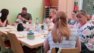 „Herzlich willkommen in der Gemeinde Hofbieber“, ertönte es im Seminarraum des Familienzentrums. Im Rahmen eines gemütlichen Babycafés wurden die neugeborenen Kinder mit ihren Eltern begrüßt. Jeweils zwei Mal im Jahr führt das Familienzentrum Hofbieber zusammen mit dem Kommunalen Netzwerk Humandienste Hofbieber (KNHH) die Neugeborenenbegrüßung durch. Innerhalb der Veranstaltung werden die Angebote des Familienzentrums sowie die Beratungsmöglichkeiten in und um Hofbieber mit den wichtigen Ansprechpartnern bei Fragen rund ums Thema Kind vorgestellt. Anschließend können sich die Eltern bei Kaffee und Kuchen kennenlernen, treffen und austauschen.