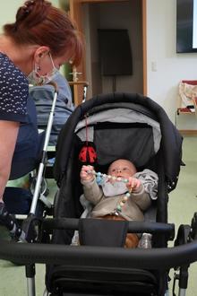 Die Leiterin der Kindertageseinrichtung Schwarzbach, Anna-Lena Handwerk, informierte über die Kinderbetreuungsangebote in der Gemeinde. Im Anschluss erhielten alle frischgebackenen Eltern eine Begrüßungstasche mit informativen Broschüren zum Thema Kinder und Familie. Auch ein Babylätzchen und ein Gutschein des Tourismus- und Gewerbevereins - gestiftet durch das KNHH - gehörten dazu.