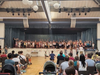 Am 25.06.2023 kam es anlässlich des Sommerfestes der Kindertageseinrichtung Hofbieber zur Aufführung der Tanzgeschichten auf der großen Bühne im Gemeindezentrum. Dort durften die Eltern, Geschwisterkinder, Kitakinder und Erzieherinnen erleben, wie sich die Marienkäfergruppe als Entdecker auf die Suche nach dem „Frühlingsflatterkrabbeltier“ begab und sich bei der Spatzengruppe die kleine Raupe Theobald zu einem schönen bunten Schmetterling verpuppte. Die Schmetterlingsgruppe verwandelte die Bühne in einen Zirkus mit Jongleuren und Seiltänzern. Dabei kamen sogar wilde Tiger auf die Bühne. Die Igelgruppe führte passend zu ihrem Gruppennamen eine Tanzgeschichte über einen Igel und einen Polizisten vor. Abgeschlossen wurde die Aufführung im Gemeindezentrum mit einem schönen Mitmachtanz für alle.