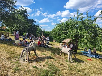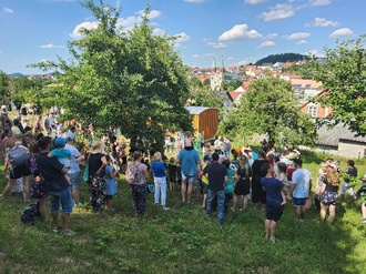 Zum Abschluss des Sommerfestes haben sich noch einmal alle Kinder, Geschwisterkinder, Eltern und Erzieherinnen auf dem oberen Außengelände des Kindertageseinrichtung getroffen, um gemeinsam ein Abschiedslied zu singen.