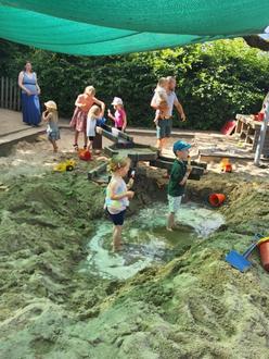 Nach der Aufführung ging es zum gemeinsamen Picknick auf das großzügige Außengelände der Kindertageseinrichtung. Bei den sehr sommerlichen Temperaturen gab es kühle Erfrischungen in Form von einem Eisbuffet sowie dem einrichtungseigenen Wasserspielbereich. Im Turnraum der Einrichtung konnte man sich den Film der Krippenkinder anschauen. Denn auch die Krippenkinder haben sich an einem Tag mit der Tanzpädagogin getroffen, um jeweils pro Gruppe eine schöne Bewegungsstunde zu erleben. Während der Bewegungsstunde zum Thema Tiere wurden die Krippenkinder zu kleinen Raupen und bunten Schmetterlingen. Die Krippenkinder waren sehr stolz auf ihren eigenen kleinen Film, den sie sich zuvor auch schon bei einem gemütlichen Kinderkino im Krippenflur angeschaut haben.