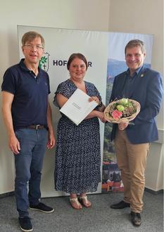 Bürgermeister Markus Röder und Personalamtsleiter Georg Kling nahmen in den vergangenen Tagen mit Ausdruck von viel Lob und Anerkennung zur Kenntnis, dass Natalie Wiegandt die Umschulung mit hervorragendem Ergebnis bestanden hat und heißen sie nun herzlich Willkommen im Team der Tourist-Information und Zentrale. Bürgermeister Markus Röder gratulierte im Namen des Gemeindevorstands und überreichte einen Blumenstrauß.