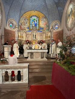 Mit Wirkung vom 01.01.2025 geht Pfr. Paul Gerhard nach über 7-jähriger Tätigkeit in der Pfarrei Schwarzbach „St. Maria vom Berge Karmel“ in den Ruhestand. Die Pfarrei verabschiedete sich von ihrem Pfarrer am 29.12.2024, dem letzten Sonntag des Jahres und letzten Sonntag als eigenständige Pfarrei, im Rahmen eines feierlichen Gottesdienstes. Der Gottesdienst begann mit dem festlichen Einzug in die Kirche, bestehend aus allen Ministranten der Pfarrei, den beiden Diakonen Manfred Oeste und Ludwig Wagner, den Pfarrern des Personalverbund „St. Margareta Vorderrhön“ Pfr. Michael Heidel, Pfr. Piotr Kownacki und Pfr. Andreas Matthäi sowie von Pfarrer Paul Gerhard.