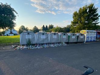 Die Behälter waren über-/voll, da wegen personeller und technischer Probleme seitens des Entsorgungsunternehmens das Altglas mit erheblicher Verzögerung abgefahren wurde.