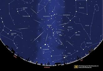Fluchtpunkt der Perseiden im namensgebenden Sternbild Perseus. Grafik: Vereinigung der Sternfreunde (VdS)