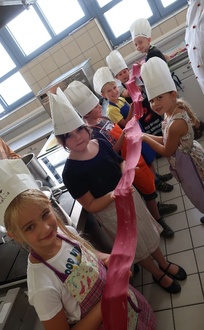 Die Kinder im Alter von 6 bis 10 Jahren besuchten die Kunststation Kleinsassen und veranstalteten gemeinsam mit dem „Freundeskreis Italien“ eine Pasta-Party und stellten dabei die längste Nudel Hofbiebers her.