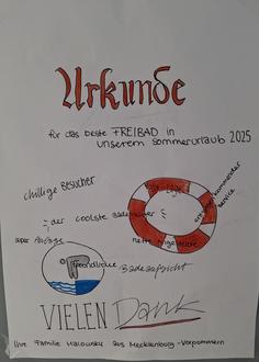 Die Verleihung einer Urkunde durch Badegäste „für das beste Freibad im Sommerurlaub 2025“ verlieh unserem Bademeister-Team ein stolzes Lächeln im Gesicht.