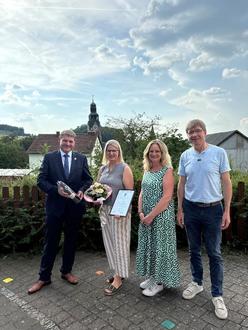 (v.l.: Bürgermeister Markus Röder, Andrea Bleuel, Anna Handwerk, Georg Kling)