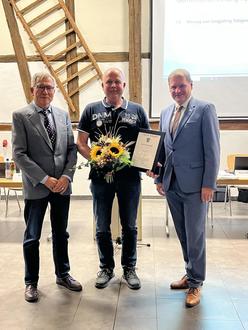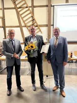 v. links Vorsitzender der Gemeindevertretung Martin Herbst, Carlo Gutmann sowie Bürgermeister Markus Röder