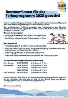 Betreuer*innen für das Ferienprogramm 2023 gesucht!