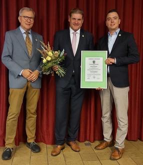 Im Rahmen der Sitzung wurde der Bürgermeister feierlich verpflichtet. Der Vorsitzende der Gemeindevertretung, Martin Herbst sowie der 1. Beigeordnete Florian Wehner, überreichten ihm die Ernennungsurkunde und sprachen ihm seine Anerkennung für die geleistete Arbeit aus. „Markus Röder hat in den vergangenen Jahren bewiesen, dass er nicht nur für die Bürger ansprechbar, sondern auch Meister seines Faches ist“, sagte Herbst.