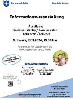 Alle an einer sozialpädagogischen Fachausbildung zum Sozialassistenten und zur Sozialassistentin sowie zum Erzieher und zur Erzieherin Interessierte sind herzlich eingeladen, sich an diesem Abend umfassend über die beiden Schulformen zu informieren.