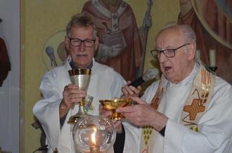 Am vergangenen Montag wurde in der Gangolfskapelle auf der Milseburg ein Gottesdienst zu Ehren des Heiligen Wendelinus gefeiert - mit Pfarrer Willi Schmitt, gebürtig aus Kleinsassen, und Diakon Manfred Oeste aus Elters als Zelebranten.