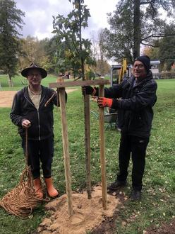 Im Oktober 2025 haben zwei Mitglieder des Vorstands des Fördervereins Freibad Bieberstein e.V. gemeinsam mit tatkräftiger Unterstützung der Gemeinde Hofbieber sechs neue Bäume gepflanzt. Dabei fanden drei Patonen und drei Ampher ihren Platz auf dem Freibadgelände.