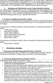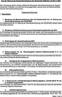 | 1. | Beratung und Beschlussfassung über die Niederschrift der 16. Sitzung der Gemeindevertretung vom 28.09.2023 |