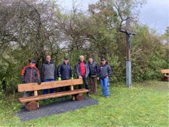 Der Rhönklub hat am Hofberg die Vereinshütte und pflegt auch den gesamten Platz herum. Die drei Bänke neben dem Holzkreuz waren in die Jahre gekommen und der Rhönklub Hofbieber hat neue Bänke bestellt und den Untergrund dafür vorbereitet. Mit vereinten Kräften wurden die neuen Bänke aufgestellt.