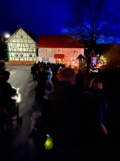 Dann war es endlich soweit. Nach einer schönen Andacht konnten wir bei trockenem Wetter mit den Laternen laufen. Musikalisch wurden wir von einer Abordnung der Original Schwarzbachtaler begleitet.