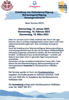 Familienzentrum Hofbieber - Erstellung von Patientenverfügung, Betreuungsverfügung, Vorsorgevollmacht