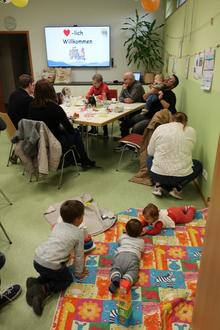 Bei anschließenden Kaffee und selbstgebackenem Kuchen von ehrenamtlichen Helferinnen der Bürgerhilfe – einen herzlichen Dank an dieser Stelle - konnten sich die neuen ErdenbürgerInnen kennenlernen und die jungen Eltern zu verschiedensten Themen wie Schlafgewohnheiten austauschen.