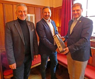 Die Bürgermeister (von links) Carsten Froß, Ronny Günkel und Markus Röder bei der Übergabe der Geschäftsführung an Hilders. / Foto: AG Milseburgradweg