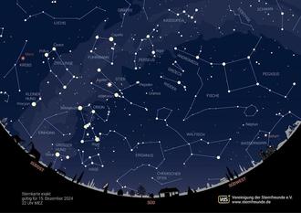 Sternenkarte für den Monat Dezember: Himmelsanblick am 15. Dezember um 22 Uhr. Grafik: Vereinigung der Sternfreunde (VdS)