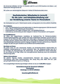 Stellenausschreibung - Kaufmännische Mitarbeiterin (m/w/d) für das Personalamt