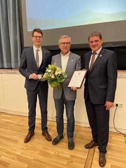 von links nach rechts: Sebastian Müller als stellvertretender Vorsitzender der Gemeindevertretung, Vorsitzender der Gemeindevertretung Martin Herbst, Bürgermeister Markus Röder