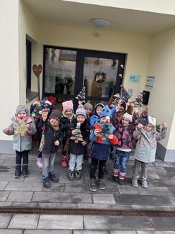 Zum Abschied durften die Kinder die selbstgebastelten Weihnachtsbäume mit nach Hause nehmen und sind sehr stolz darauf.
