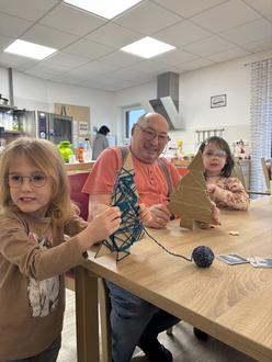 So wurden die Kinder in die "Alte Schule" eingeladen. Hand in Hand haben die Senioren und die Kinder Tannenbäume aus Wolle gezaubert und anschließend weihnachtlich verziert.
