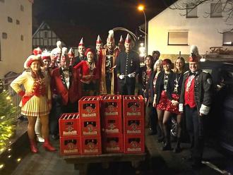 Um ein möglichst großes Gegengewicht zu haben, hatten alle tüchtig gevespert und kletterten nach und nach vorsichtig auf die antike Holzwaage, die, wie jedes Jahr, mit etlichen Kisten Hochstift-Bier bestückt war. Der Prinz als erster, gefolgt von seinen Ministern Felix und Andrè. Jetzt begann die Waage zu pendeln - und als dann noch Prinzenmariechen Emma, Zero Leon und Fähnrich Johannes auf die Waage stiegen, brauchten sich die Hobifa-Mitglieder keine Sorgen zu machen, ob die Mannschaft genügend Kilos auf die Waage brachte. So wurden auch diesmal wieder genügend Kisten Hochstift für die künftigen Busfahrten der Hobifa als Gegengewicht gestapelt. Wie viele Kästen am Ende nötig waren, um das Gewicht der närrischen Oberhäupter von Hofbieber auszupendeln, wird wie immer nicht verraten.