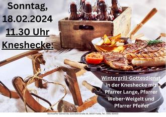 | Kneshecke | 11.30 Uhr | Grillgottesdienst mit den Gemeinde Johannes und Bonhoeffer aus Fulda und Petersberg |