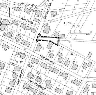 Dieser Feldweg grenzt im Westen an die Steinstraße an und liegt zwischen den Grundstücken Steinstraße 4 und Steinstraße 6 sowie die beiden in östlicher Richtung angrenzenden Grundstücke