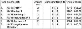 Mannschaftsführer Manuel Sänger 285 Ringe und 282 Ringe, Gerd Rein beim Wettkampf gegen Oberbiel 261 Ringe.