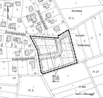 | Im Norden: | Kornbergstraße bzw. in dessen Verlängerung Feldweg, dahinter Wohnbebauung |