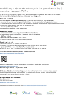 - eine 3-jährige, praxisnahe Ausbildung in den Verwaltungen der vier Gemeinden
