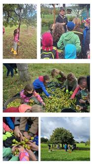 Bei der diesjährigen Apfelpressaktion, die auch im Rahmen der Deutschen Aktionstage für Nachhaltigkeit stattfand, gelang es uns wieder viele Menschen zusammenzubringen. Von 2,5 bis 77 Jahren waren es die Teilnehmer, die unser Herz auf der Streuobstwiese höher schlugen ließen. Es ist einfach ein Wohlfühlort der verbindet. So wird die eigentliche Arbeit -die Apfelernte- mit vielen unterschiedlichen Erfahrungen zum Erlebnis. Denn wir probierten uns durch 9 Apfelsorten, lernten deren Namen kennen, erklärten den Unterschied von Kelter- und Lagerapfel, pflückten die einen und schüttelten die anderen. Wir überholten das Bewusstsein für fehlerhafte Apfelschalen und ungenießbaren Schadstellen. Die Kleineren tollten, die Größeren kletterten, die Erwachsenen machten vor. Die älteste Generation erfreute das alles so sehr, dass sie uns zum gemeinsamen Mittagessen Unterschlupf gewährte, mit Kuchen versorgte und für in zwei Wochen zum "Äppelbrei" kochen einlud.