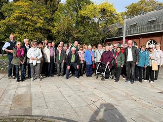 Dort angekommen, waren sich alle einig „Wenn Engel reisen, lacht der Himmel“, denn bei strahlendem Sonnenschein und angenehmen Temperaturen betrat die Gruppe durch das historische Schauhaus von 1905 den Palmengarten, wo sie bereits erwartet wurden.