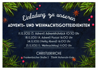| 11:00 Uhr | Weihnachtsgottesdienst |
