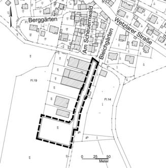 In den Geltungsbereich wurde auch die Parzelle der Straße „Bleichgärten“ ab dem Grundstück „Bleichgärten Nr. 7“ in Richtung Süden bis auf Höhe des geplanten Gewerbegrundstückes aufgenommen.