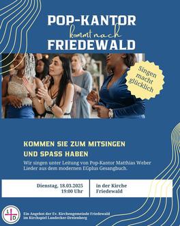 | 19:00 Uhr | in der Kirche in Friedewald (Popkantor Matthias Weber) |