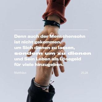 Matthäus 20,28: Der Menschensohn ist nicht gekommen, um sich bedienen zu lassen, sondern um anderen zu dienen und sein Leben als Lösegeld für viele hinzugeben.“