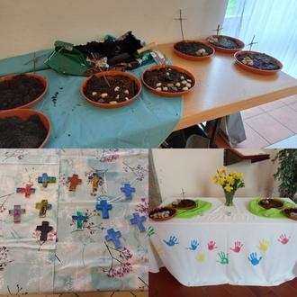 Am vergangenen Samstag, den 08. April, haben 12 Kinder im Kindergottesdienst in Ransbach einen Oster-Kindergottesdienst gefeiert. Nach dem gemeinsamen Frühstück haben die Kinder die Ostergeschichte gehört. Im Anschluss daran haben sie Ostergeschenke gebastelt: Bemalte Salzteigkreuze, Osterkarten und Ostergärten sind entstanden. Vier Kinder haben ihre Ostergärten an die Kirchengemeinde für die Kirche in Ransbach ausgeliehen. Auch kleine Osterkörbchen vom Osterhasen konnten die Kinder suchen. Jedes Kind hat am Ende seine und ihre Basteleien mitnehmen können und ein kleines Osterkörbchen vom Osterhasen erhalten. Es hat den Kindern wieder viel Spaß gemacht.