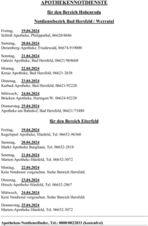 Kein Notdienst vorgesehen. Siehe Bereich Hersfeld.
