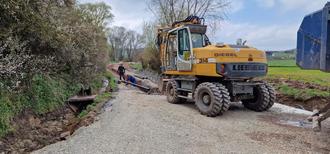 Hohenroda. Derzeit werden in Mansbach am Radweg R15 nähe der Paupelswiese die Gewässerdurchlässe erneuert. Die Fertigteile mit circa 9 Tonnen Gewicht wurden mit einem Spezialbagger gesetzt. Diese sollen zum einen starke Regenereignisse ableiten, zum anderen für die Kleinstlebewesen durchwanderbar sein.