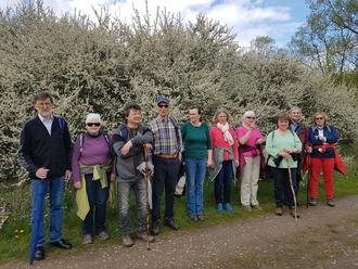 Der Rückweg führte dann mit Löwenzahn geschmückten grünen Wiesen der Werraauen zum Naturschutzgebiet Brühl mit kleinem Teich. Hier wurde nochmals eine Rast an den Ruhebänken eingelegt. Dann schlängelte sich der weg linksseitig einher entlang des Werraufers mit Weiden- und Lindenbäumen dem Flussverlauf folgend zurück nach Tiefenort. Bei herrlichem Sonnenschein und leichter Bewölkung betrug die gesamt ebenerdige Strecke 10 km mit schöner Aussicht zum Inselsberg (914m) und den Ausläufern des Thüringer Waldes. Mit einer Einkehr im Landhotel Krone in Kisselbach wurde eine eindrucksvolle Wanderung abgeschlossen. Wanderfreund Jürgen Schumacher bedankte sich bei den Wanderführern Inge Nickson und Werner Vandenplas.